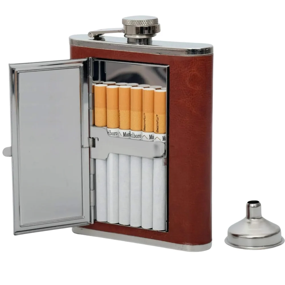 Home PREMIUM GIFTING Premium Barware Leather Hip Flask with Cigarette Holder.