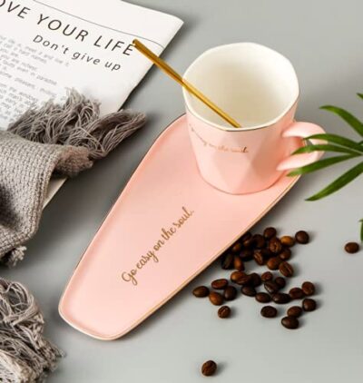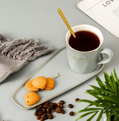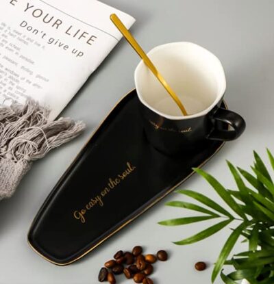 Breakfast Snacks Coffee Cup and Saucer Set with Spoon and Tray