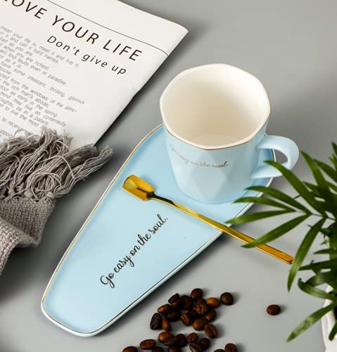 - European style light luxury ceramic coffee cup set afternoon tea household mug tray with spoon coffee utensils