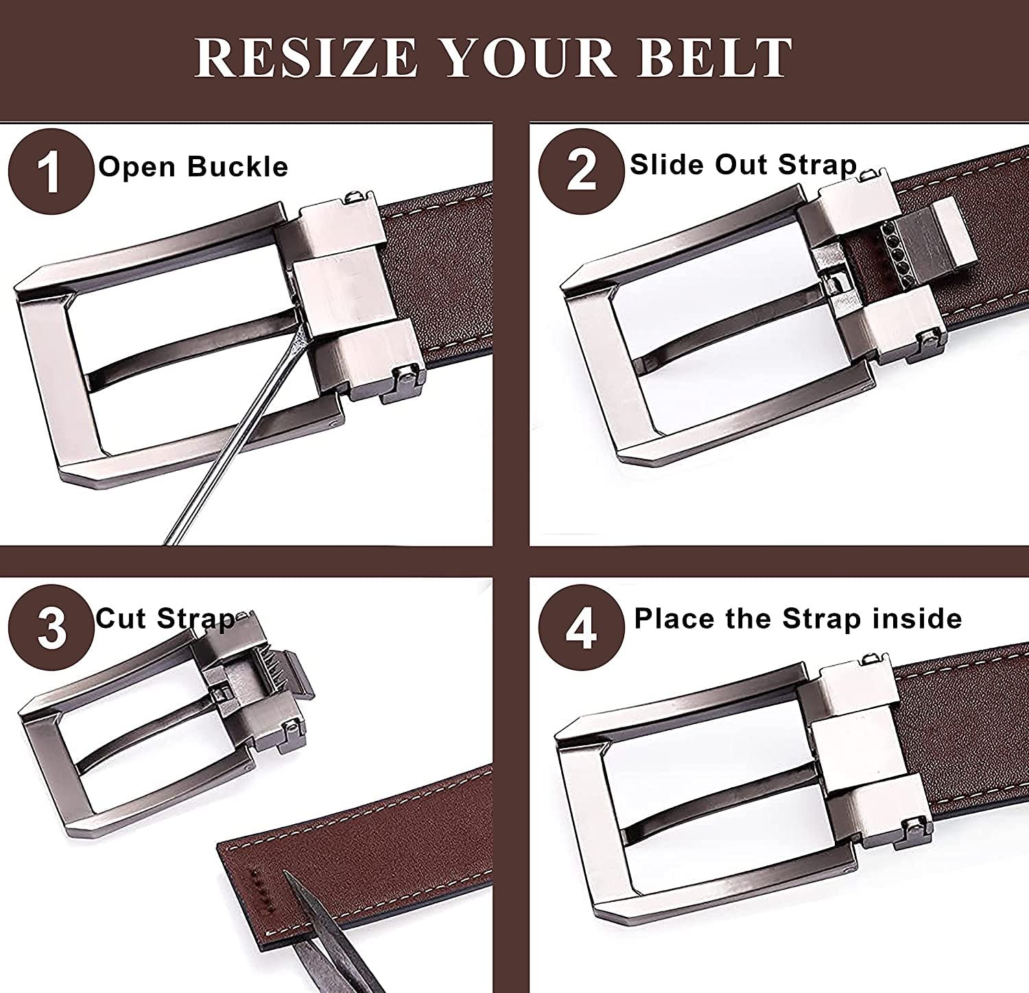 • Adjustable size belt :In just 4 easy steps you can make the belt fit for your size. 1 : Unscrew the round screw with a sharp object. 2 :Remove the Screw and pull out the buckle. 3 : Cut the strap with a scissor for size. 4 :Attach the screw back with a sharp object and done! In just 4 simple steps your belt is ready
